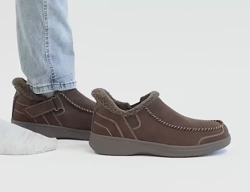 The Orthofeet Vito Chocolate blends the warmth of a slipper with the support and protection of a shoe, making it perfect for both indoor lounging and outdoor errands. Featuring a tailored suede upper and lined with soft faux fur, these shoes keep your feet warm while offering superior comfort and support. With the hands-free design, you can simply step in—no bending or tying required, making it ideal for those with back pain or mobility challenges.