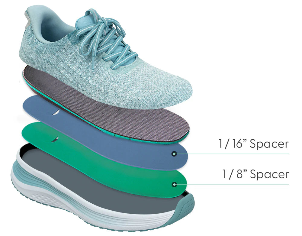 Each Orthofeet shoe comes with two removable spacers for a customisable fit