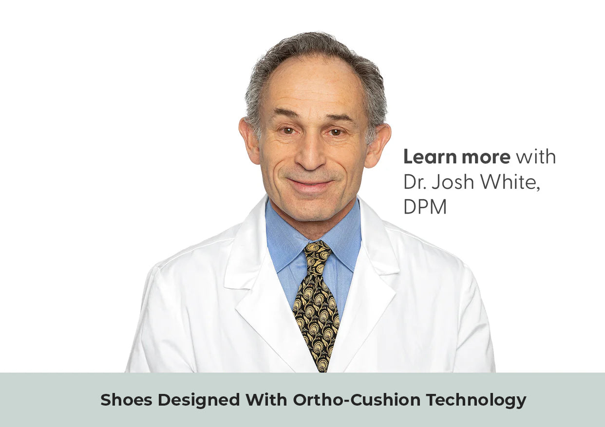 Innovative Ortho-Cushion™ System with premium orthotic insole and ergonomic cushioning sole soften impacts, improves the ease of walking and adds spring to your step.