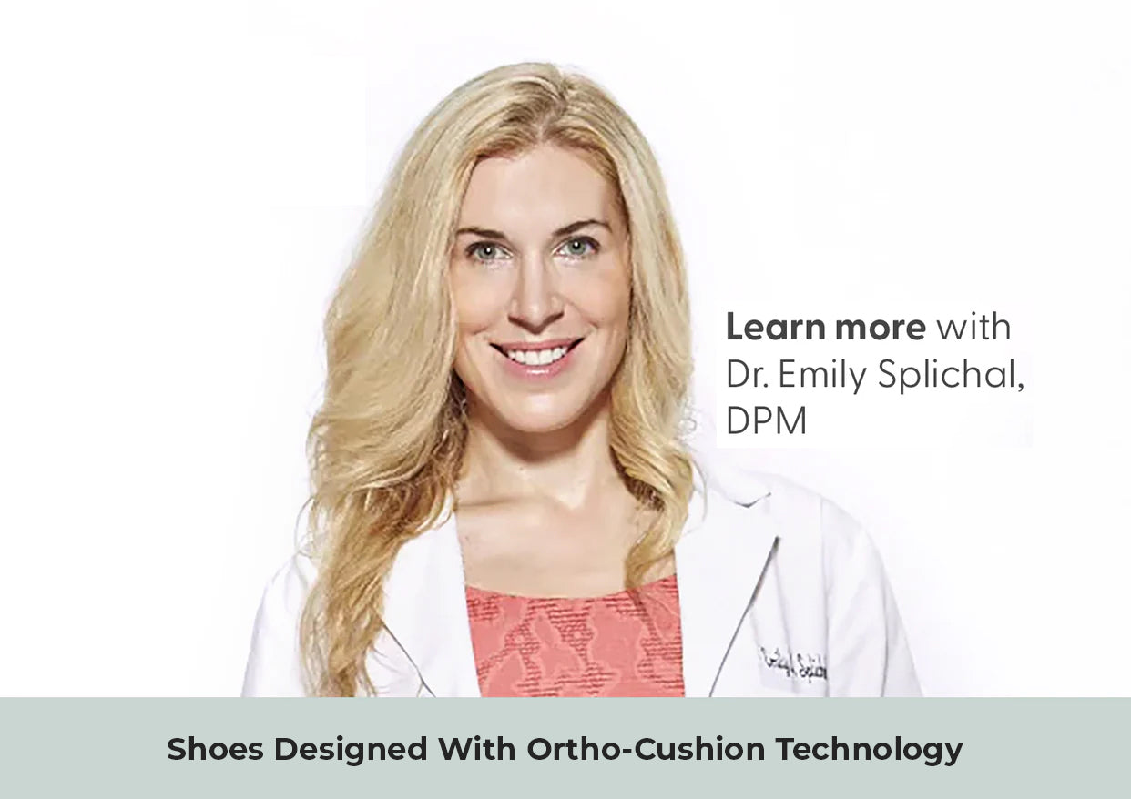 Innovative Ortho-Cushion™ System with premium orthotic insole and ergonomic cushioning sole soften impacts, improves the ease of walking and adds spring to your step.